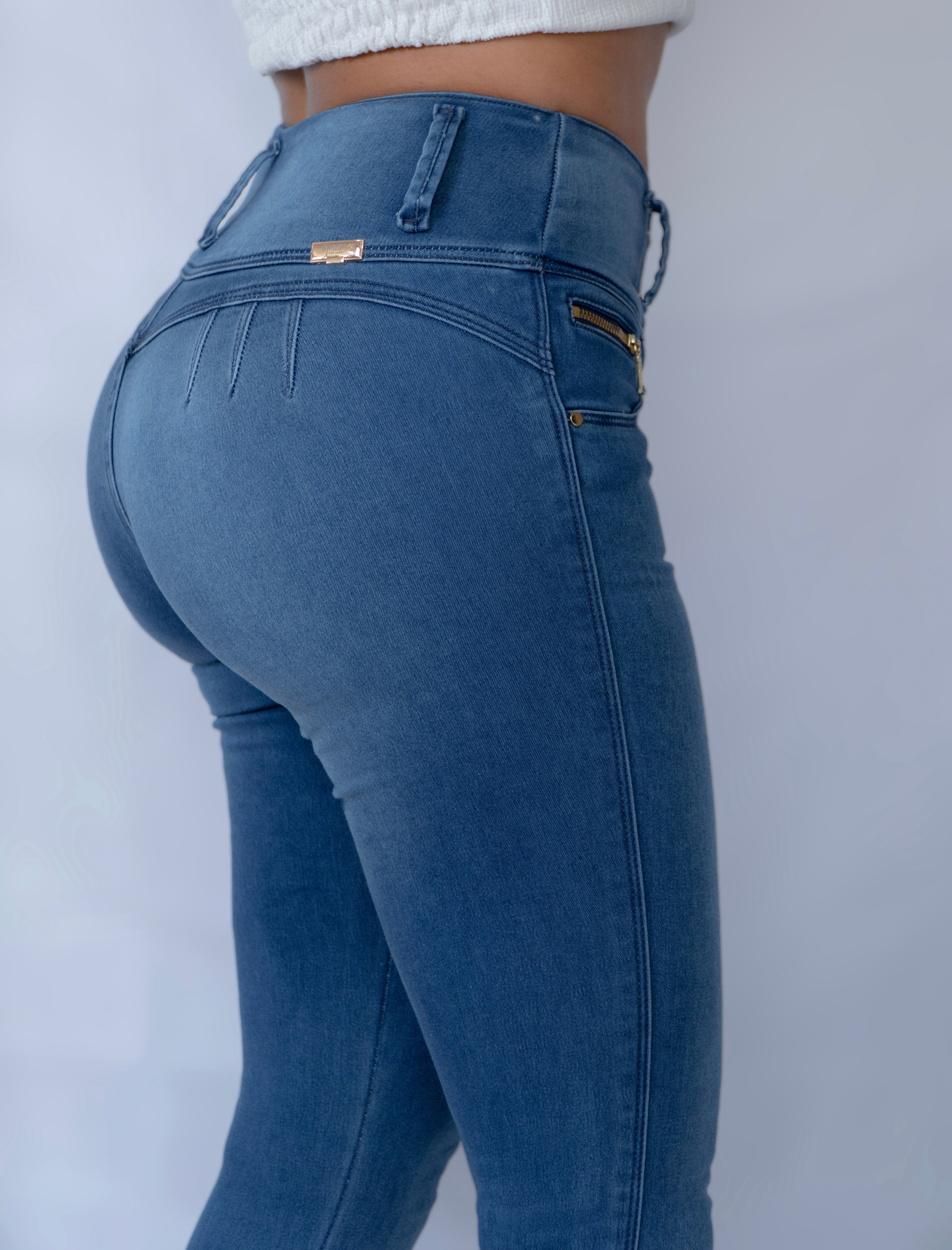 Engineered for a sculpted silhouette, these butt-lifter jeans feature advanced shaping technology that enhances and lifts while you wear them. The sleek skinny cut flatters your frame, while functional front zippers at the pockets and lower leg opening provide convenient access and a modern edge. Designed without back pockets for a streamlined profile that maximizes the lifting effect. Perfect for those seeking both style and confidence-boosting support.